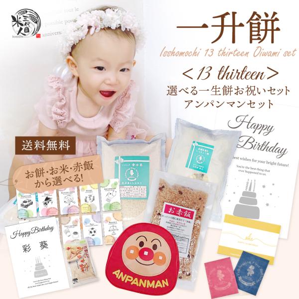 お赤飯 も選べる 一升餅 お祝いセット アンパンマン リュックつき 送料無料 小分け おすそ分け 風呂敷 名前入り 一升米 男の子 女の子 おいしい 背負い餅 風呂敷 1歳 誕生日 選び取りカード お誕生餅